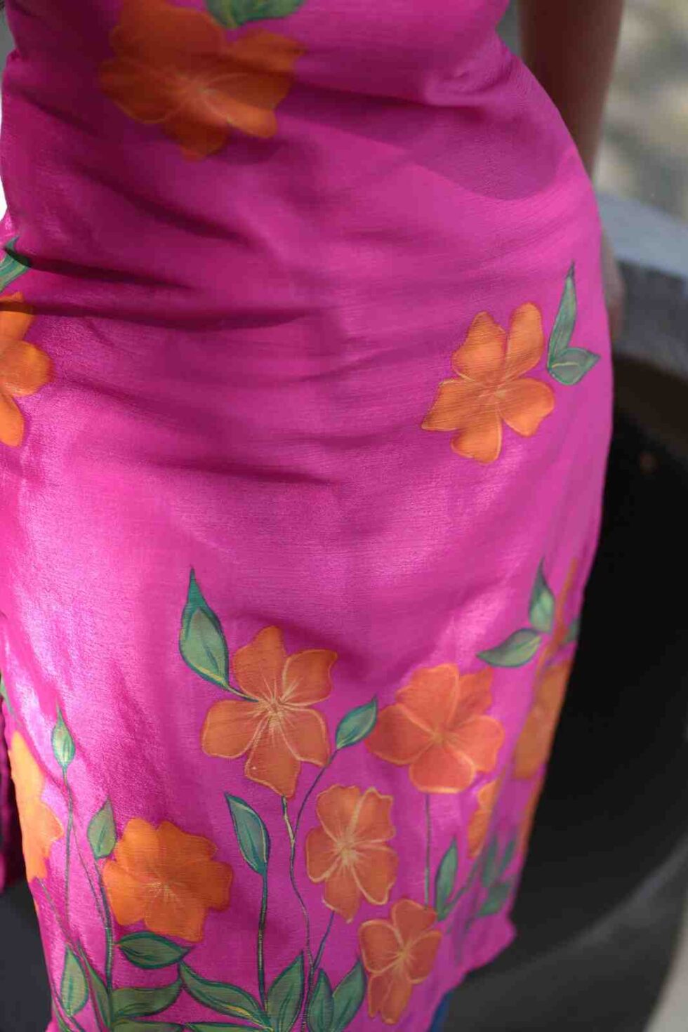 Mild color bleeding may occur. Wash separately in cold water with mild detergent. Dry in shade. Iron on reverse only. Do not scrub the painted area.
