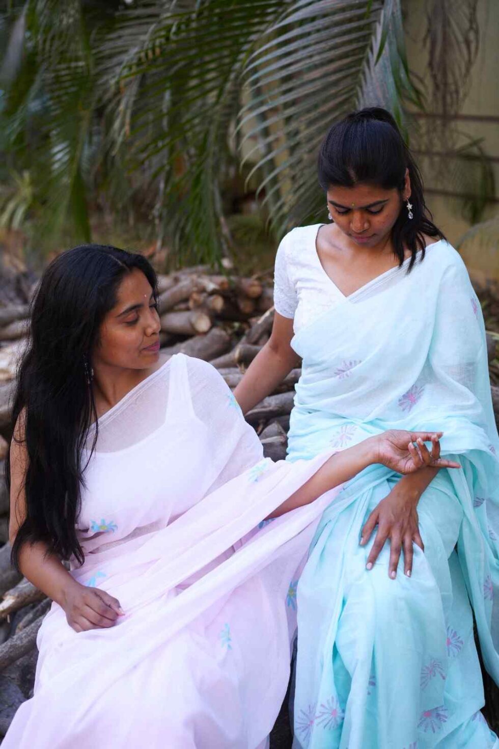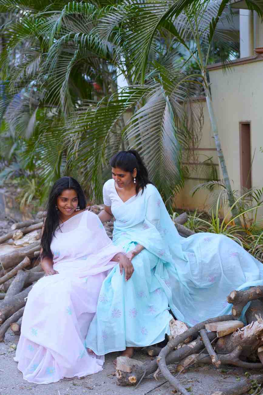 BLUES Handpainted mul cotton saree